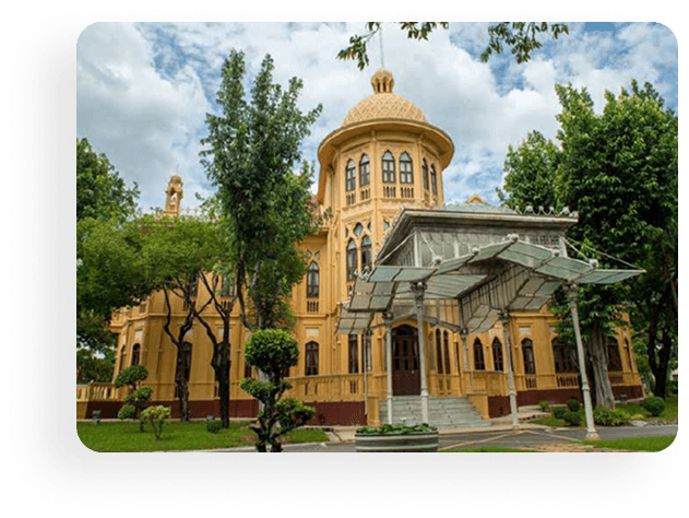 - เรือนโสภา เป็นอาคารเรือนไม้เน้นลวดลายจากผนังลูกฟักไม้ เป็นสถานที่ทํางานและพักผ่อนของส่วนรักษาความปลอดภัย บริเวณโดยรอบบ้านมีสนามและสวนยุโรปที่สวยงาม ด้านหลังมีสระน้ำขนาดใหญ่ปลูกบัวและเลี้ยงปลานานาชนิด หน้าบันมีรูปปั้นนารายณ์บรรทมสินธุ์ ซึ่งเป็นสัญลักษณ์พระราชทาน เป็นเครื่องหมายประจําตระกูล ประดิษฐานอยู่บนแท่นศิลาในอ่างน้ำพุ